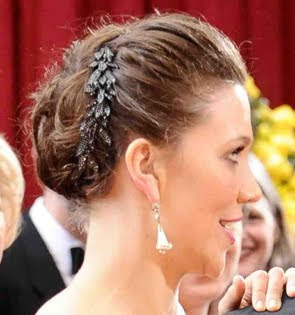 Jennifer Behr, headpiece extraordinaire, kindly let me know the gorgeous Maggie Gyllenhaal wore one of her super pretty headpieces to the Oscars this year. Maggie chose