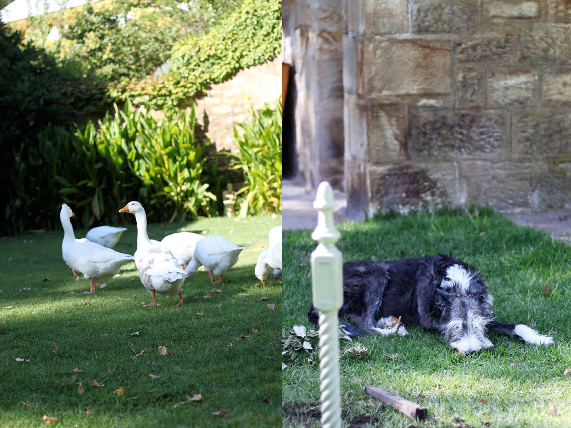 The geese that roam the property and one of the Lurchers that guard the house. I was too scared to get any closer to him so this photo was taken from a distance.