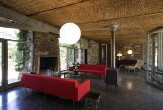 The seated area of the Sunroom is spectacular. It's large windows overlook the bars on the lower levels enticing guests to party on after the reception. This room was set up with a striking black and white theme. Large vases of gypsophila were simple but very effective.